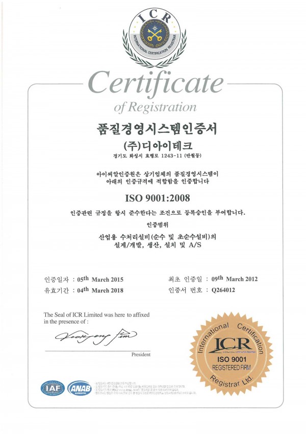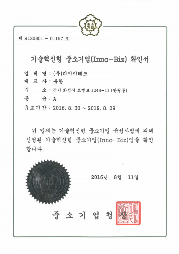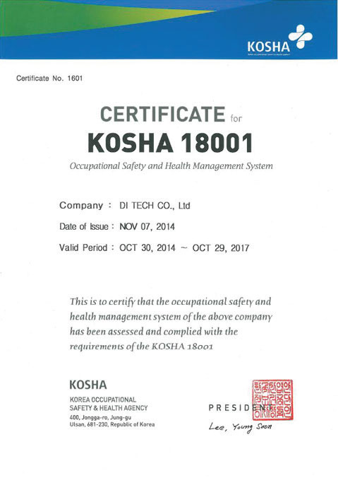 디아이테크는 품질과 신뢰를 최우선으로 하여 국내외 다양한 인증을 취득하고 있습니다.